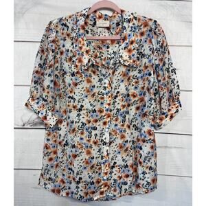 Free/Quent Top Size LG Floral Print Ruffled Collar Short Sleeve