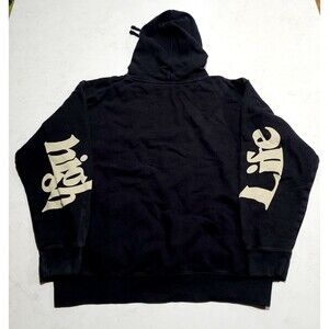 This Authentic Freebandz FUTURE HIGH OFF LIFE OFFICIAL HOODIE is a stylish and comfortable pullover made in the USA. Featuring a black color with lyrics pattern and long sleeves, this hoodie is perfect for fans of Free Bandz and Future. The hoodie includes a drawstring closure, hooded style, and pockets for added convenience. Made from fleece fabric, this regular fit hoodie is ideal for all seasons and is a must-have for anyone looking to showcase their love for hip hop culture and classic audio trends.