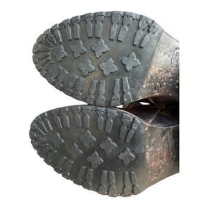 The boots are in used condition. The boots have scuffs, and factory distressing.
