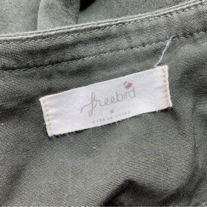 Freebird Army Green Olive Crew Neck Full Zip Jacket. Womens Size Medium. Long sleeves. Drawstrings at the bottom. Zippered pockets. 100% Cotton. Please see all photos for any flaws or conditions. D9
