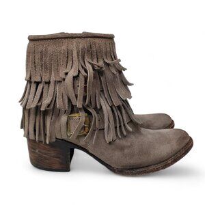 Freebird Belle Ankle Booties Women's Distressed Suede Tier Fringe Western Boho 6