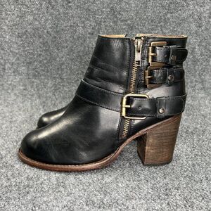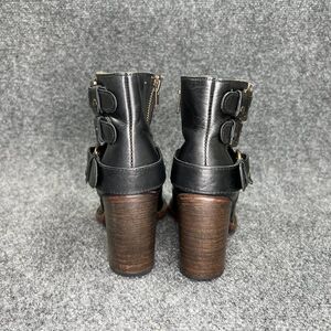Freebird Bolo Ankle Boots Women's 8 Black Leather Dual Zip Buckle Moto Booties