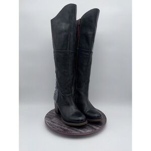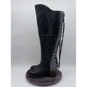 Freebird Boots Womens 9 Catrina Black Leather Over The Knee Lace Up Snake Shoes