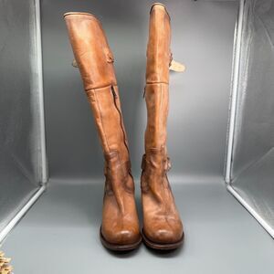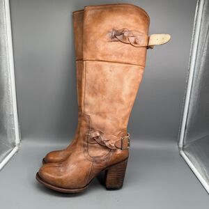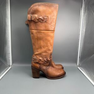 Freebird Braxton Women's 9 Brown Leather Tall Riding Boots Side Zip Block Heel