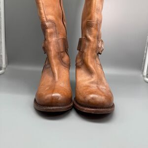 Freebird by Steven Cash Women's 9 Brown Leather Riding Boots Side Zip Block Heel