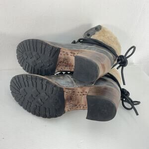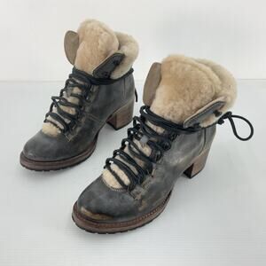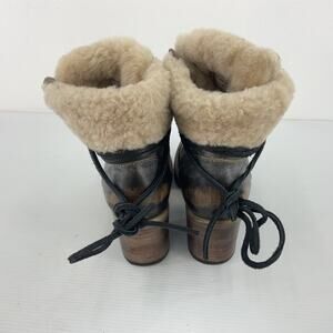 Freebird Brown/Gray Leather Shearling Heeled Boots Women’s Size 7 Preowned