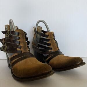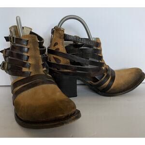 Freebird By Steven Amber Sz 8 Brown Distressed Classic Zip Buckle Leather Ankle. Some wear a couple straps are separating