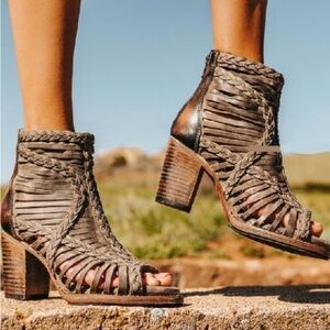 Freebird By Steven Bela Booties Sandals Womens Size 9.5 - 10 Beige Tan Open Toe