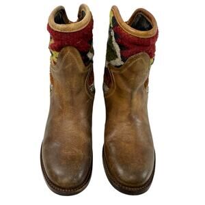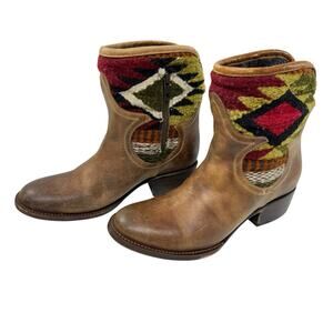 Freebird By Steven Carlo Ankle Boots Size 7 Southwestern Tapestry Brown Leather