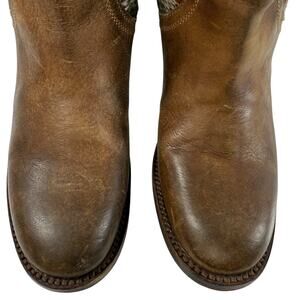Freebird By Steven Carlo Ankle Boots Size 7 Southwestern Tapestry Brown Leather in Very Good pre-owned condition. Light wear on the upper and sole. Clean inside. There are light marks, scratches, scuffs and creases from use.