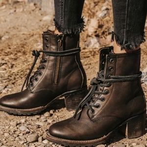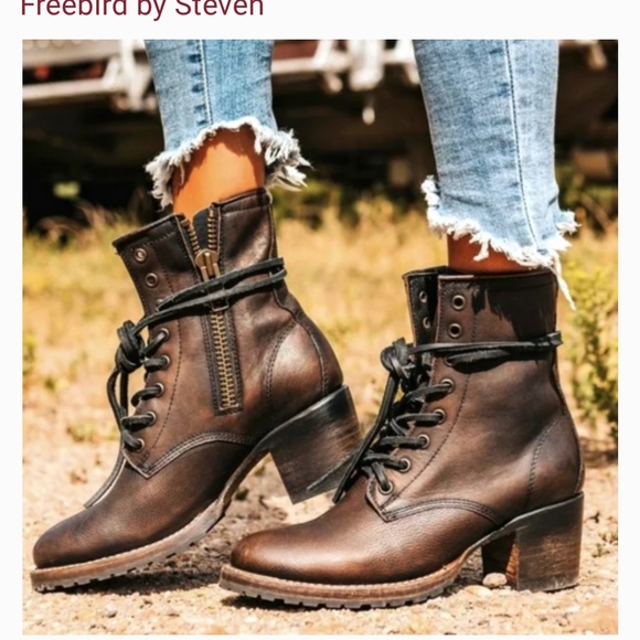 Freebird By Steven Cavalier Ankle Boots Dark Brown Black Lace Zip Up Booties New
