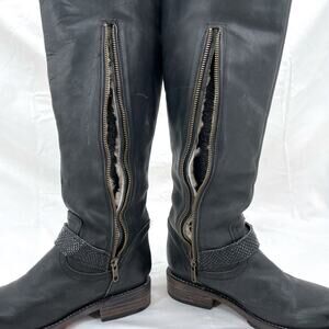 Freebird By Steven Denmark Boots Tall Black Leather Sheep Fur Lined Cozy Size 7
