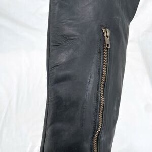 There is a scar in the leather along one zipper that has been sort of mended. See pics. Otherwise, boots are in very nice used condition with only light signs of wear to soles or uppers.