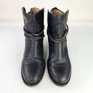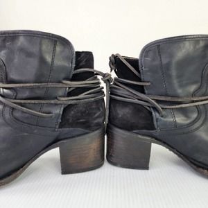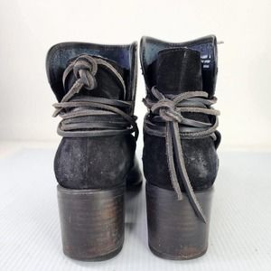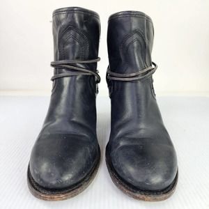 Freebird By Steven FB Casey Black Leather Ankle Boots US 8 Wrap Tie Heel Bootie