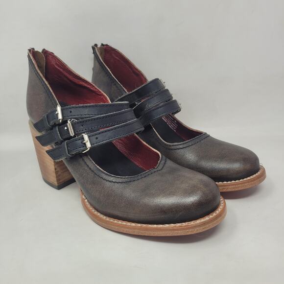 Freebird By Steven Heels 8 Brown Black Antique Leather Ramsay Mary Jane Strappy