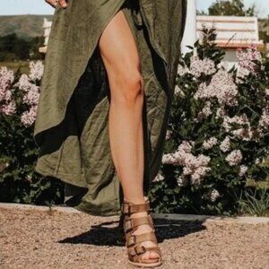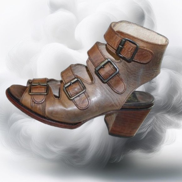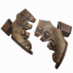 Freebird By Steven Quail Tan Leather Caged Gladiator Heels, Size 8