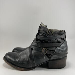 Freebird By Steven Stair Distressed Leather Womens Ankle Boots Size 6 Black