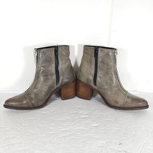 Freebird By Steven Women Claire US6 Gray Distressed Leather Zippers Heel Booties.