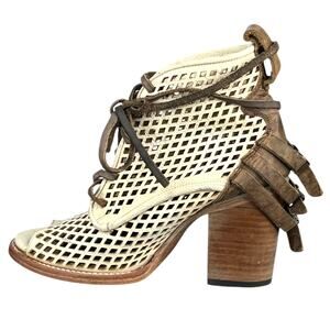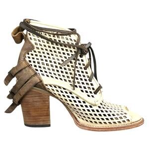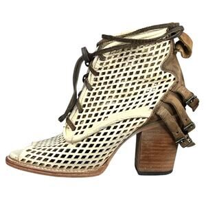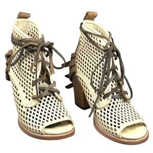 Freebird By Steven Women’s Benni Cream Leather Open Toe Ankle Bootie Size 8