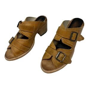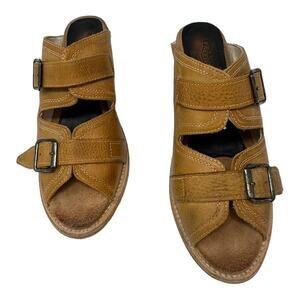 Freebird Caprice Tan Leather Buckle Sandals Block Heel Size 10