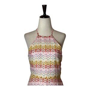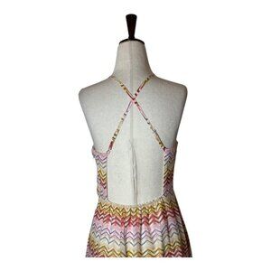 Freebird Dress Women M Pink Chevron Zig Zag Open Criss Cross Back Maxi Boho