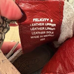 Purposely distressed, unique, funky, fun! In great used condition with life left! Zippers and buckles are all functional and you can adjust the buckles for the fit you desire. No longer available on Freebird site.