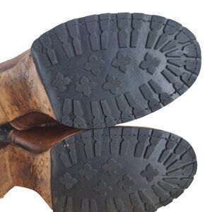 Condition: Pre-owned - no holes, tears or stains. There is distressing to the leather upper and one spot of peeling on the inside of the left boot as well as wear to the outer heel as well as some heel drag. Shown in photos.