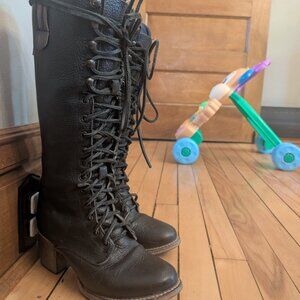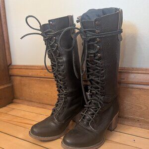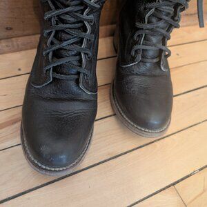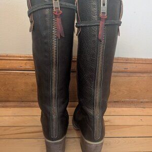 These are beautiful boots that have only been worn twice. They are black and size 8, and run a bit small (I usually wear 7.5). There is a small scuff on one toe visible in the photos, but otherwise they are essentially new. I don't have their original box, but kept the boot shapers and will ship with care.