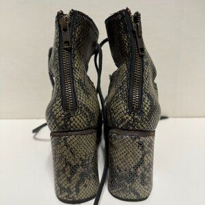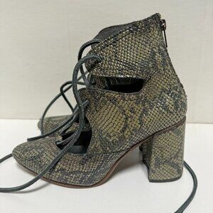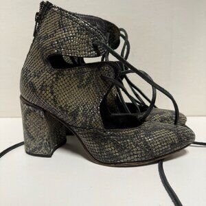 • This elegantly wild open silhouette shoe features a pointed toe and reptile embossed leather