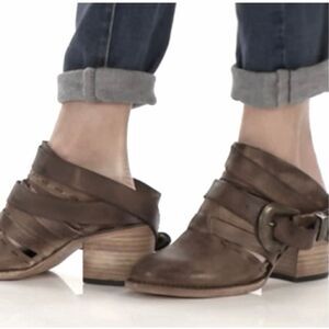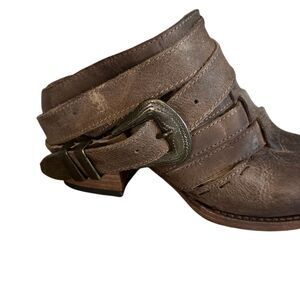 Freebird Lucky Brown Leather Strappy Buckle Slip On Mule Booties 7