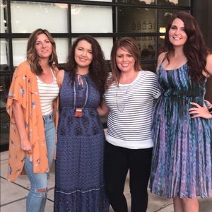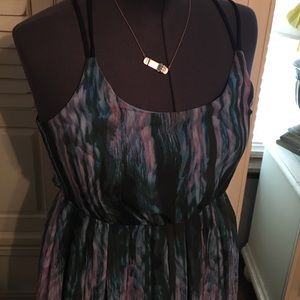 A Fun Patterned dress. Elastic gathered waist band. Very Light and flows. Built in slip. I'm 6'0 foot and it hit me a little above the knee. Free Bird. Large