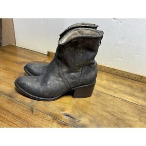 Freebird Peak Ankle Boots Western Block Heel Zip Black Gold Distressed Womens 7