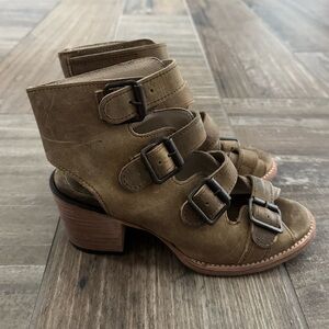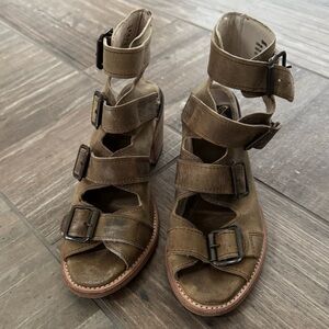Freebird by Steven Quail sandals size 6. Gently used condition. constructed on a comfortable elevated heel with an open silhouette. Four leather straps lay gently upon the foot, while adjustable brass buckles can be tailored for a preferred fit. Leather upper, leather lining, leather sole