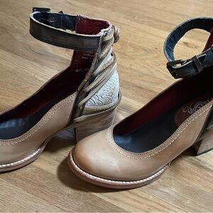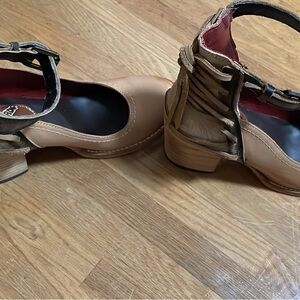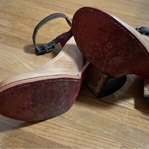 I bought both a size up and a size down of these but just don’t work for me which is why they are hardly worn. These are a size 7. If you are a half size though, the size down fit better especially if you have narrow feet. 3” heel but the most comfortable heels to wear for long periods.