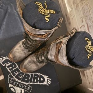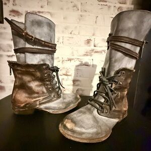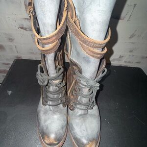 Made to look distressed these boots are STUNNING! Thinning out my collection , See pictures for beautiful condition. Comes with original box and packing . Sold out online . Get the boots grab those compliments !