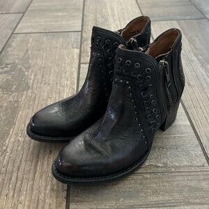 Freebird Ryder bootie Women’s size 6. Like new. Black color. Crafted with eyelet whip stitch leather detailing, an almond toe, and a working inside brass zip closure, this bootie has all the funk and groove to keep you on beat all season long.