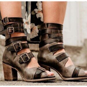Freebird Steven Bond Stone Leather Distressed Strappy Edgy Buckles Ankle Chunky