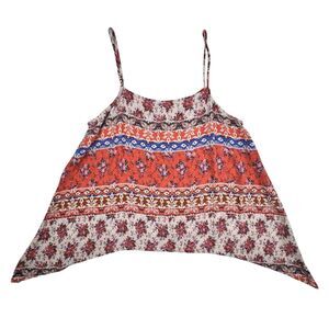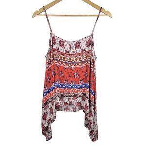 Freebird Womens Floral Tank Top M Boho Hippie Cottage Patchwork Handkerchief Hem