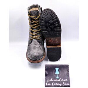 Crafted with meticulous attention to detail, these Freebird Manchester boots feature a leather upper and lining, offering durability and comfort. The textured gray design adds a distinctive flair, while the side zippers ensure convenience. With a timeless lace-up style, these versatile boots are a statement of rugged elegance.