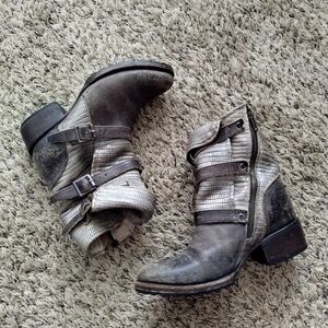 Freebird by Steven APEX Moto buckled distressed leather Boots sz 6