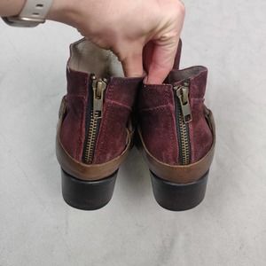 Freebird by Steven Ankle Boots Women's 7 Phlow Red Suede Leather Harness Bootie
