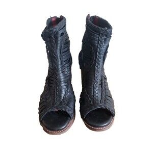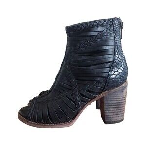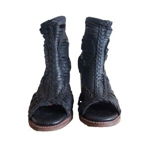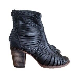Freebird by Steven Bela Heeled Cage Sandal Ankle Boots in Black Leather Size 9