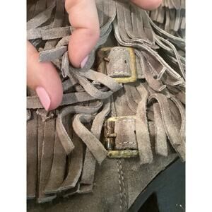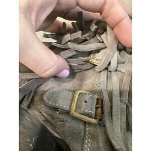 Freebird by Steven Belle Suede Double Buckle Fringe Ankle Heeled Booties US 8