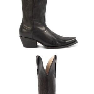 WOODLAND - an outlaw of the Wild West. This Most Wanted boot is the perfect ally with a western silhouette and traditional snip. Fashioned with decorative stitching and leather pull straps, this low heeled boot is ready for any contest.