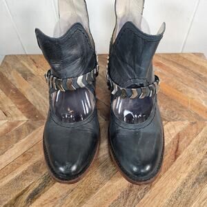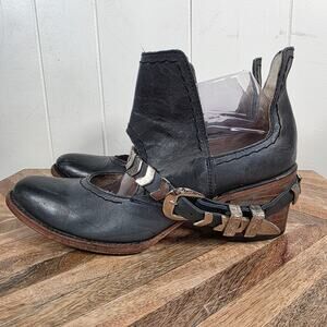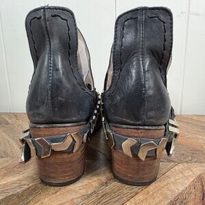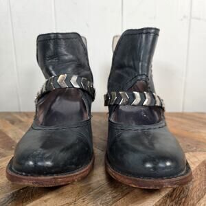 Freebird by Steven Blade Leather Ankle Boot Size 10 Navy Cutout Booties Shoes