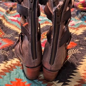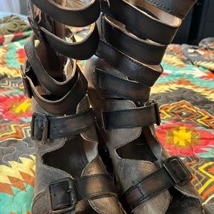 The name’s BOND. Hitting just below the calf, this open-toed sandal is crafted with an exposed silhouette and designed with 5 adjustable straps and brass buckles for a flexible fit. Finished with a raised block heel and working brass zip closure.