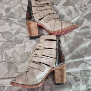 Worn once and in excellent condition. These sandals are handcrafted with meticulous detail at every curve, this leather dream leaves nothing out. A back zip closure provides stability, while adjustable straps and leather lacing allow for a custom fit.