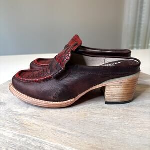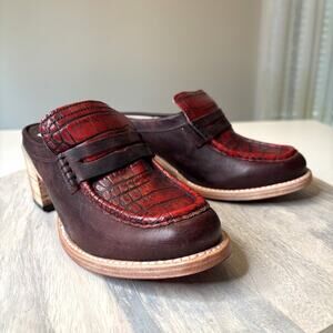 Freebird by Steven Collins Clogs Wine Multi Red Leather Croc Embossed Heels Sz 7