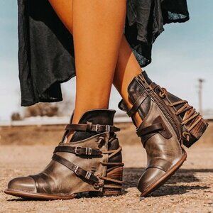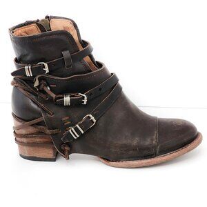 Freebird by Steven Crue Brown Distressed Leather Ankle Boots Fall Winter