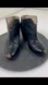 Sleek black leather booties with a stylish heel. Perfect for versatile wear. Features a stacked heel, distressing and zipper closure. In excellent used condition with a minor wear on soles. See photos for minor wear and measurements.